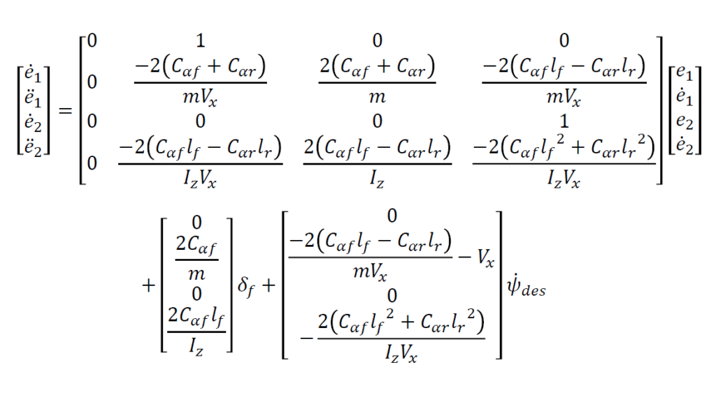 This is the state space model for the error dynamics of the wheeled bicycle model controller.